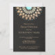 Chic et élégant avec une touche contemporaine. Une image numérique réaliste d'un fond en lin noir riche donne une sensation riche, sophistiquée et à la mode. Belle décoration de rosette mandala en faux or avec un centre turquoise vif. Personnalisez facilement le verso à la couleur de votre choix. Remarque : la texture du lin et la feuille d'or sont des images numériques - pas la réalité. Idéal pour les mariages en soirée, les événements d'entreprise et en cravate noire, les fêtes d'anniversaire, les fêtes de retraite et plus encore.