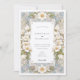 Ce magnifique faire-part de mariage présente un magnifique design Art Nouveau avec des fleurs de magnolia en ivoire doux et des tons verts. Les élégants éléments floraux s'entremêlent à des défilement ornés, créant une bordure délicate et sophistiquée qui encadre les détails mariages. Les détails complexes des fleurs de magnolia, accentués par des touches de bleu pâle et d'or, apportent une touche de charme vintage tout en conservant un aspect frais et moderne. Le dos de la carte présente un design assorti à un monogramme minimaliste, ce qui en fait une invitation parfaite pour les mariages d'inspiration nature ou vintage. La palette de couleurs raffinée d'ivoire, de vert, de bleu et d'or renforce son élégance intemporelle, ce qui en fait un choix inoubliable pour votre journée spéciale.