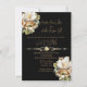 De belles fleurs blanches de Magnolia et des anneaux de mariage or sur un arrière - plan noir et texte or. Un beau séparateur en diamant sépare le mot "Mariage" du reste du texte de l'invitation