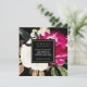 Ces magnifiques invitations de mariage présentent un design magnolia aquarelle moderne dans des tons vifs de rose, blanc, or et vert avec un centre de cadre noir et or.