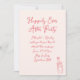 Whimsical Happily Every After Wedding Party Invitation, avec une bouteille de champagne dessinée à la main avec un arc et une police de style écriture dans un rouge terre cuite sur un arrière - plan rose roux.