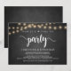 Maintenant, c'est l'heure de faire la fête, Annonce / Invitation de Mariage Intime, sur un tableau noir de ferme rustique, avec un design de guirlandes lumineuses. C'est parfait pour votre réception de mariage et votre fête de célébration post-mariage. Ajoutez vos détails dans la même police / lettrage.