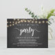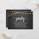 Maintenant, il est temps de faire la fête, Faire-Part de Mariage Intime / Carte d'invitation, sur fond de tableau noir rustique, guirlande lumineuse. C'est parfait pour votre réception de mariage et fête de célébration après le mariage. Ajoutez vos détails dans la même police / lettrage.
