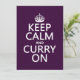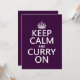 On peut lire "Keep Calm and Curry On", dans le style de l'affiche classique "keep calm. C'est un design simple et propre, parfait pour tous ceux qui aiment le curry et les épices.