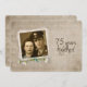 Invitation à une maison ouverte pour les 75 ans de mariage avec un cadre photo personnalisé à l'ancienne et un bouquet de marguerites et des perles.