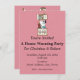 Cette invitation à la fête de carte à plat est rose avec une cuisine rétro ornée poêle à cuisine blanche avec garniture en or et des fleurs avec ustensiles de cuisine vintages, pots, casseroles et cafetière. Customisez vos informations avec les modèles.