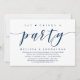 Thème élégant et moderne de couleur bleu marine, carte d'invitation de mariage intime (Manger, Boire et Faire la Fête). C'est parfait pour votre célébration décontractée au bord du lac.