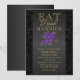 Fleur violette et noire - Carte d'invitation de mariage "Mangez, buvez et soyez mariés". ⭐Ce produit est 100% personnalisable. Les graphiques et/ou le texte peuvent être ajoutés, supprimés, déplacés, redimensionnés, modifiés, pivotés, etc... 99% de mes conceptions dans ma boutique sont réalisées en couches. Cela vous permet de redimensionner et de déplacer facilement les éléments graphiques et le texte pour qu'ils s'adaptent parfaitement à chaque produit. ⭐ (Veuillez vous assurer de redimensionner ou de déplacer les éléments graphiques si nécessaire avant de commander) Vous pouvez également "TRANSFÉRER LE DESIGN" sur d'autres produits Zazzle et ajuster le design pour qu'il convienne à la plupart des produits Zazzle. (Le bouton est en bas à droite de la page) Certains textes graphiques ont des zones prêtes à remplir ou vous pouvez cliquer sur le bouton "PERSON