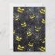 Mangez, buvez et soyez effrayant Faire-part de mariage d'Halloween avec un crâne et une bordure web sur un arrière - plan grunge noir. Mangez, buvez et soyez effrayant est décoré avec une chauve-souris, corneille, toile d'araignée et araignée pendante. Vos noms et "Mangez, Buvez et Soyez effrayants" sont dans une police jaune vif tandis que le reste du texte est blanc. L'arrière de l'invitation a des visages jaunes valet o'lanterne et une toile d'araignée superposée.