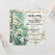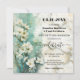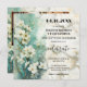 Une faire-part de mariage tout-en-un fantaisiste artistique agrémentée d'un tableau de fleurs blanches en marbre. Au dos se trouve votre photo préférée et un modèle de code QR optionnel avec des informations sur les réponses.