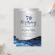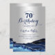 Bleu marine et argent agate 70e anniversaire invitation de fête. Elégant design moderne avec aquarelle bleu royal agate marbre arrière - plan, faux parties scintillant siler et typographie script. Carte invitation branchée parfaite pour une célébration anniversaire féminine élégante. Invitations Zazzle imprimées ou téléchargement instantané modèle imprimable numérique.