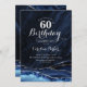 Invitation à la fête du 60e anniversaire en bleu et argent de la Marine. Elégant design moderne avec aquarelle bleu royal agate marbre arrière - plan, faux parties scintillant argent et typographie script police. Carte invitation branchée parfaite pour une célébration anniversaire féminine élégante. Invitations Zazzle imprimées ou téléchargement instantané modèle imprimable numérique.