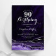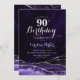 Purple et argent agate 90e anniversaire invitation de fête. Design élégant et moderne avec aquarelle agate marbre arrière - plan, faux parties scintillant argent et typographie script. Carte invitation branchée parfaite pour une célébration anniversaire féminine élégante. Invitations Zazzle imprimées ou téléchargement instantané modèle imprimable numérique.