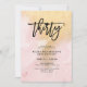 Cette glamour et élégante invitation à la fête du 30e anniversaire présente un rose vif et un faux arrière - plan en marbre d'or, avec typographie de script à la mode en noir.
