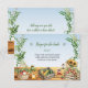 Célébrez l'amour avec un charme rustique ! Cette carte d'invitation pour une fête de mariage au marché aux puces présente des paniers aquarelles de fruits et légumes frais, de tournesols, de pots de miel et d'herbes qui sont parfaits pour une fête sur le thème de la ferme à la table ou du jardin. C'est un choix unique pour les mariées qui adorent le style organique et l'ambiance champêtre. Idéal pour les fêtes de mariage printanières ou estivales, les brunchs ou les fêtes de cuisine. Le verso révèle que tout a été acheté et que la table est vide. Utilisez-la comme carte d'information, carte d'informations de registre ou comme demande de recette. Disponible avec des produits assortis.