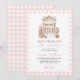 Elle est fraîche du marché ! Une invitation à une douche de mariée avec un chariot de fleurs mignon sur fond de gingham rose.