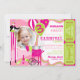 Modèle d'invitation d'anniversaire de carnaval avec l'insertion de photo dans les roses et le vert de chaux. Comporte un marcheur d'échasse, une machine de sucrerie de coton, des ballons, et des billets de jonglerie de tombola sur le côté. Perforez juste les côtés pour un facile arrachent !
