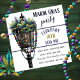 Invitation Mardi Gras Mask and Gas Lamp with Beads