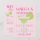 Invitation et modèle d'itinéraire de fête d'enterrement de vie de jeune fille Margarita rose et vert, Invitation au week-end d'enterrement de vie de jeune fille Margs et Matrimony, Bachelorette de plage.