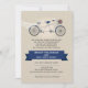 Invitation Mariage à bicyclette bleu foncé Faux Linen