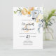 Un country chic traditionnel blanc, orange, blanc et bleu a dessiné des invitations de mariage à l'aquarelle fleurie avec l'ampersan orange tendance et typographie de personnaliser initiales.