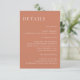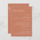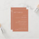 C'est moderne Mariage en terre cuite Insertion modèle de carte, qui ajoutera une touche d'élégance à votre décor de mariage, et les tons rouille et désert seront parfaits pour les Mariages de automne. Tout le texte est modifiable, il suffit de cliquer sur "Personnaliser ce modèle", puis de "Customiser plus loin". Des articles correspondants, y compris la carte Invitation et la carte RSVP, sont également disponibles.