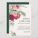 Invitation Mariage à fleurs rose vif et marsala Rose pivoine