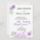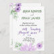 Aquarelle violet Faire-part de mariage florales Designs présente des éléments d'aquarelle florale élégants en blanc, violet et vert.