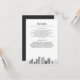 Une fiche d'informations pour les invités minimaliste avec une vue de la skyline de Houston.