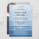 Une invitation moderne après le mariage ou après le mariage avec un design peint à l'aquarelle rayé bleu ton sur ton avec une finition argentée. Au dos se trouve votre photo personnalisée. Beau pour une réception seule ou une célébration après le mariage.