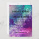 Pour le couple dont l'histoire d'amour est écrite parmi les étoiles...une invitation de mariage à thème galaxie qui ne manquera pas d'attirer l'attention de tous ! Les détails textuels sont personnalisables et se trouvent sur un arrière - plan d'espace en violet, bleu, vert, rose et blanc.