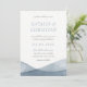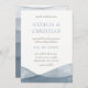Bordure à l'aquarelle bleue ombrée par trempage, invitation de mariage. Style de design simple et moderne avec une typographie poussiéreuse bleue et grise coordonnée. Le dos de l'invitation présente un motif aquarelle bleu trempé assorti.