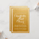Ajoutez une ambiance élégante et moderne à votre invitation de mariage avec un style de calligraphie à fioritures sur un fond métallique doré brossé avec une typographie et une bordure blanches superposées.