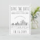 Une invitation unique de mariage "save the date" pour un mariage qui aura lieu dans la belle ville de Pittsburgh, en Pennsylvanie. Cette invitation présente une illustration stylisée de l'horizon unique de la ville avec son nom en dessous. Viennent ensuite les informations sur votre jour de mariage dans un style ouvert assorti. Au verso de l'invitation, une couleur gris foncé complète l'aspect et la convivialité. Tous les éléments individuels de la carte d'invitation sont déverrouillés, vous pouvez donc modifier les détails nécessaires tels que les tailles de police, les styles, etc. en utilisant la fonction de personnalisation. Vous pouvez ajouter une photo au verso et lui appliquer un filtre noir et blanc. Amusez-vous à être créatif et à faire de cette invitation la vôtre !