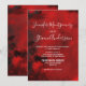 Invitation de mariage avec un motif abstrait moderne. Les couleurs rouge et noir tourbillonnent, se mélangent et se côtoient. Créatif, artistique et unique avec une touche sombre et mystérieuse.
