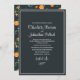 Agritourisme moderne chic agrus oranges invitations de mariage botanique. Les textes sont dans un mince et élégant script blanc clair. La couleur arrière - plan est foncée couleur bleu marine du charbon de bois et donne vraiment un beau contraste sophistiqué. Ces invitations sont très chic et élégantes et feront une impression durable sur vos invités.