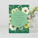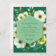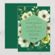 Ce design élégant présente une disposition vibrante d'anémones blanches ivoire sur un fond vert émeraude profond. Les fleurs peintes avec des centres sombres sont complétées par un feuillage vert doux et des brindilles délicates, créant une atmosphère botanique luxuriante et sophistiquée. Parfait pour une union raffinée et moderne.