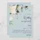 Faire-part de mariage d'hydrangée blanche bleu aquatique. Design moderne et police. Élégant.
