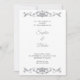 Découvrez un faire-part de mariage d'art déco à fleurs blanches et en ARGENT, parfait pour une célébration sophistiquée et romantique. La belle invitation est composée d'élégantes oeuvres de défilement sur le dessus et le bas de la papeterie dans une couleur argentée étonnante, lui donnant une atmosphère raffinée et intemporelle. La police noire traditionnelle est complétée à merveille par la police de caractères argentés moderne et design utilisée pour les noms des couples, ajoutant une touche de luxe au design. Le beau design floral sur l'invitation apporte une touche de beauté naturelle au design général, apportant un élément de douceur à l'invitation. L'arrière - plan blanc fournit une toile propre et fraîche pour le motif floral complexe, créant un contraste saisissant avec le texte noir et le travail de défilement argenté. Les détails délicats des fleurs rendent l'invitation vraiment spéciale et unique, parfait pour une célébration mariage romantique et intime. Le papier de haute qualité utilisé dans l'invitation ajoute à son élégance et à son raffinement, en faisant un souvenir qui sera chéri pour les années à venir. L'invitation impressionne les clients et donne le ton pour une belle et mémorable fête mariage. Avec son design époustouflant et son souci du détail, cette faire-part de mariage Art déco à fleurs d'ARGENT et de blanc est le choix idéal pour les couples à la recherche d'une invitation raffinée et élégante pour leur journée spéciale.