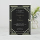 Découvrez notre magnifique faire-part de mariage art déco noir et vert ! Cette invitation est une oeuvre d'art qui laissera vos invités en émerveillement. La partie principale de l'invitation est noire, ce qui crée un look intemporel et élégant. La bordure verte Art déco présente des lignes complexes et des formes géométriques, ajoutant une touche de sophistication et de glamour à l'ensemble du design. Le texte de l'invitation est blanc, ce qui le rend facile à lire et vous assure que votre message est transmis clairement. Les noms des couples sont mis en valeur dans une belle teinte de vert, ce qui les rend pop et ajoute une touche de personnalité au design. Cette invitation est parfaite pour les couples qui veulent faire une déclaration avec leurs invitations de mariage et présenter leur style unique. Le faire-part de mariage art déco noir et vert est élaboré avec les matériaux les plus fins, ce qui lui confère une apparence et une sensation de qualité. Il est imprimé sur papier de haute qualité et est la taille idéale pour l'insertion dans une enveloppe standard. L'attention portée aux détails dans la conception et la construction de cette invitation est inégalée, ce qui en fait un choix exceptionnel pour votre journée spéciale. Dans l'ensemble, notre faire-part de mariage art déco noir et vert est un choix étonnant pour les couples qui veulent faire une déclaration avec leurs invitations de mariage. C'est un véritable chef-d'oeuvre qui impressionne vos invités et donne le ton pour un événement mémorable et élégant. Commandez la vôtre aujourd'hui et rendez votre jour de mariage inoubliable !