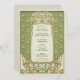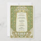 Ce luxueux faire-part de mariage Art Nouveau présente un cadre floral vert et doré complexe, inspiré par l'élégance ornée du design du début du XXe siècle. Les motifs botaniques délicats, les détails symétriques et les courbes fluides créent une esthétique vintage mais intemporelle. La typographie raffinée s'harmonise harmonieusement avec le cadre décoratif, évoquant un sentiment de romantisme et de sophistication. Le dos de la carte présente un emblème monogramme minimaliste avec un motif stylisé d'arbre et de ruban, ajoutant une touche artistique personnalisée. Parfait pour les couples à la recherche d'une faire-part de mariage classique d'inspiration vintage au style raffiné et élégant.