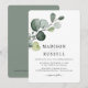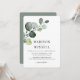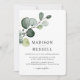 Simple et élégant feuillage d'eucalyptus unique avec éclaboussures dorées pour invitation de mariage. Typographie classique et script. Ajoutez le nom des mariés au verso. Articles assortis dans cette collection.