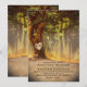 Cartes d'invitation de mariage vintage élégantes représentant un lac romantique dans un cadre boisé, un vieil arbre rustique avec un cœur gravé et vos initiales à l'intérieur, et un modèle de mariage personnalisable.