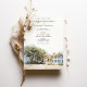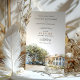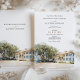 Annoncez votre mariage avec élégance et charme sudiste grâce à cette superbe suite d'invitations, mettant en vedette une charmante illustration aquarelle de l'historique musée de la maison Kaminski à Georgetown, en Caroline du Sud. Le recto de l'invitation présente une vue pittoresque de la majestueuse maison blanche, encadrée d'arbres verts luxuriants et d'un aperçu d'une maison de gardien en briques rouges. La scène est rendue dans un style aquarelle doux et artistique, évoquant un sentiment de grâce sudiste, de tradition et de romance.