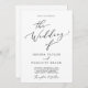 Ce délicat faire-part de mariage de calligraphie noire à l'avant et à l'arrière est parfait pour un mariage moderne. Le design minimaliste romantique présente une belle et élégante typographie noire sur un arrière - plan blanc au look épuré et sobre. Enregistrez du papier en incluant les détails au verso du faire-part de mariage plutôt que sur une carte de boîtier séparée. Inclure également les informations RSVP si votre invité répondra par voie électronique (facultatif).