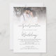 Mariage avec superposition de photo de code QR de script informel. Ajoutez votre code QR à votre site web de mariage au verso fait de ceci une option pratique pour vos invités pour répondre et voir tous les détails sans avoir besoin de cartes de réponse et de détails séparées. Personnalisez facilement le texte et remplacez la photo exemple avec votre propre préférée.