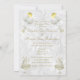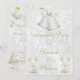 Invitations faites sur commande personnalisées de fiançailles. Blanc élégant et romantique et cloches de mariage d'or avec des invitations de fiançailles de cannelures de champagne pour votre jour spécial. Les belles et élégantes cloches de mariage de blanc et d'or et les verres mignons et chics de champagne avec des bulles, les arcs et les alliances/anneaux que les images ont imprimés sur un arrière - plan blanc assez floral et fleuri de motif de damassé, sur l'inverse des invitations sont or chic et fascinant et les ballons blancs avec des arcs de blanc et d'or, les anneaux de mariage et les gâteaux de mariage. Stupéfiant, original, invitations personnalisés uniques pour le fiançailles approprié à toute saison : - printemps, été, automne/automne ou hiver. Illustration des graphiques de J.Rett. http://www.jrett.