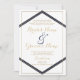 Faire-part de mariage blanc minimaliste bleu marine et or géométrique moderne. Un or de luxe et une faire-part de mariage bleu marine sont parfaits pour toute fille glamour classe et sophistiquée ou n'importe qui. Ce design est parfait pour un événement de fête branché et élégant. Customisez ce design avec votre propre message et des informations personnalisées. Tous les dessins sont imprimés.