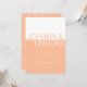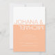 Cette charmante faire-part de mariage allie harmonieusement les blocs de couleur pêche et blanche, ce qui donne une impression moderne et fantaisiste. Le haut de l'invitation est orné d'une belle ombre blanche, tandis que le fond est d'une belle couleur pêche. Pour ajouter une touche ludique, le nom de la mariée est écrit en pêche sur le bloc blanc, tandis que le nom du marié se distingue en blanc sur le bloc pêche, placé intrigamment à l'envers. Le style minimaliste de l'invitation est renforcé par une police simple. Sur le dos, les initiales du couple sont élégamment affichées en blanc sur un arrière - plan de pêche, complétant ce faire-part de mariage enchanteur.