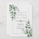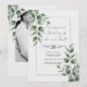 Carton d'invitation de mariage blanc moderne avec un minimum de feuillage.